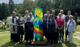 Die gläserne Stele soll Hinweisgeber und Blickfang sein, ein Ort der Trauer und der Erinnerung, aber auch Trost und Hoffnung vermitteln. So lautet die Grundidee der privaten Initiative, die mit Unterstützung der Genossenschaft der Barmherzigen Schwestern vom heiligen Vincenz von Paul dieses Projekt angeregt und gestiftet hat.